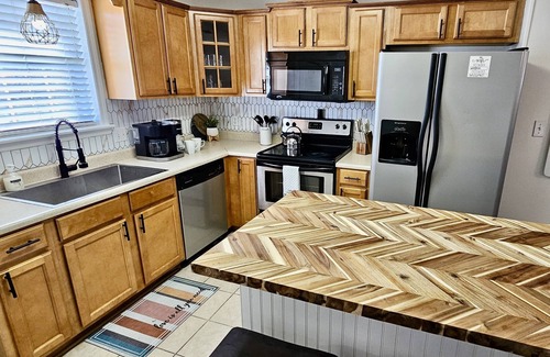 Holy Cow! Cottage is spacious open concept property with large family room with sectional sofa, to cuddle up and enjoy your favorite movies on Smart TV with your subscriptions. Dining seating is table and bar stools at island. Kitchen is fully equipped and a joy to cook in. Island gives you additional space to prepare. Keurig/coffee Pot combo is perfect for everyones preference. Main Bedroom Boasts a beautiful King Canopy Bed with another Smart TV to enjoy. Private Main bath has updated Tub/Shower and walk-in closet. All Bedrooms have new very comfortable mattresses. 4th Bedroom has Bunk bed with twin over Full bed. Fast Wifi Internet to work or play. Outdoor Patio seating, fenced backyard and charcoal grill, charcoal not provided. Family games are provided. Each bedroom has alarm clock/ Sound Machine for a peaceful sleep. 2 car parking pad, Keypad Entry and motion sensor Exterior Lights to help you find your way. Cleaning supplies & Vacuum as needed. Washer/Dryer & Ironing Board. Created for your family Enjoyment!