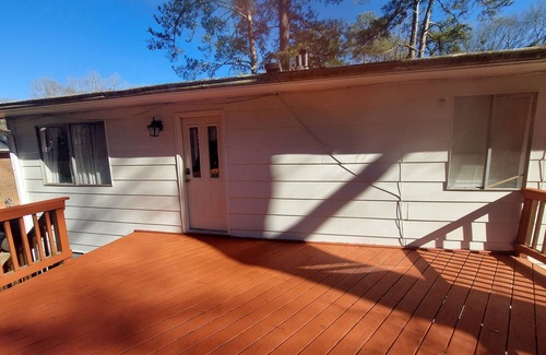 Discover this marvelous 3-bedroom gem in Morrow. Labeled the holy home. Blessing you with low prices but comfortable living in a private area, with low traffic. Private main floor, driveway, and back deck are available. This house features 3 queen beds, AC, WiFi, and heating.Two Roku Tv's. With a cozy bathroom equipped with a hair dryer to make you feel right at home. A dining space to eat. With a back deck to smoke, or just have peace of mind after a long day. This place will help you feel at home while you're traveling. 15 minutes from the airport. 20 to 30 minutes from Atlanta. Directly off a major highway and located walking distance from every fast food, multiple banking institutions, a mall, and a Walmart. With local bowling, movies, and every type of food to eat in or out. At your desire. With a walking path if you're into nature or exercise.