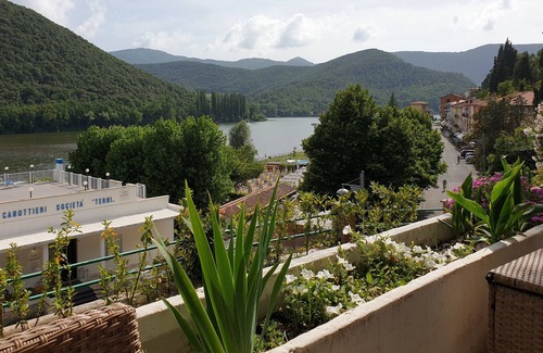 Our house is autonomous, just one floor, the east side of the village of Piediluco, it has a wide garden surrounding the house, with a panoramic view on the lake. It also has 3 bedrooms, 1 has a queen bed, the others have a queen bed, a queen size bed in the living room, for a total capacity of 6 people. There is a full bathroom, a well-furnished kitchen with an oven and a fridge. The house has 2 accesses, one from the street below, one on the panoramic street, where you can take a walk in the direction of the castle.