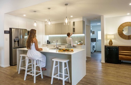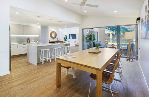 This family-friendly beach house is perfectly centred between the trendy Moffat Beach, and local family hangout, Dicky Beach, so you have your pick of Caloundra's best during your stay. All throughout the area you will find upbeat shops and cafes, plenty within walking distance of the house.