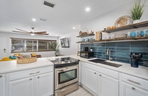 Minutes away from all that Sebastian has to offer! Whether you're on a stay-cation or a snowbird seeking fun in the sun, you'll have a great stay in this stylish and comfortable home. This central location is just a short drive away from all the best boat docks. Less than 5 minutes from Capt Hirams Resort, Earl's Hideaway and Sky Dive Sebastian. Only 10 minutes from i95. We can't wait to host you!
