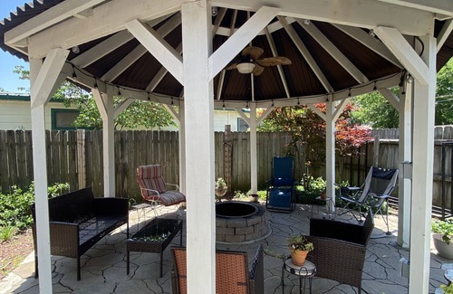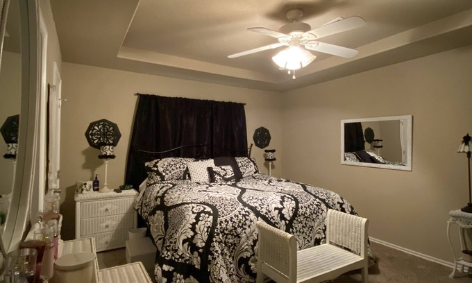 Comfortable, quiet and relaxing home with everything you need to have a weekend away! We have 2 bedrooms with 2 full bathrooms. A spacious living area, and a full kitchen. Our back patio space has an indoor area for the hot days when you still need some air conditioning, and a covered fire pit area, perfect for a chilly night! Overall, it’s a great place to kick your feet up, take a load off, and relax. It's your home away from home!