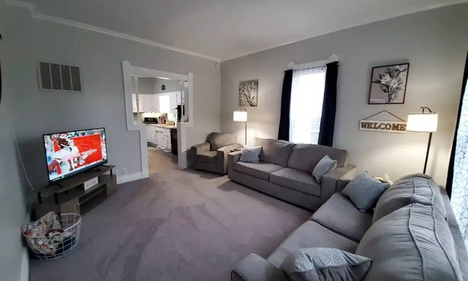 Welcome to our charming 1920s two bedroom and one bath cottage. This cozy and well-maintained space offers a unique glimpse into the past while providing all the modern comforts you need for a comfortable stay. A king, queen and pullout queen beds give you plenty of space for rest. Off street parking for up to three vehicles and a privacy fenced back yard. Whether you're visiting for business or pleasure, our 1920s two bedroom and one bath cottage is a comfortable and nostalgic retreat.