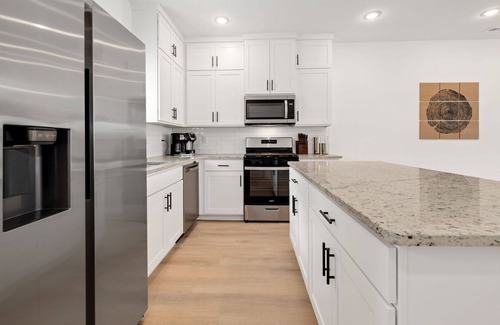 Guests will have access to the entire pictured house, all appliances, any kitchen supplies, and all amenities. We provide amenities in the bathrooms, kitchen, and laundry room with enough to get you started on your trip. We do not provide excess for more than a couple of days' worth, and guests are responsible for purchasing these items for personal use if they run out during their stay. Exterior cameras may be at the property for security purposes.