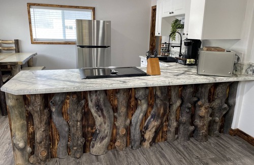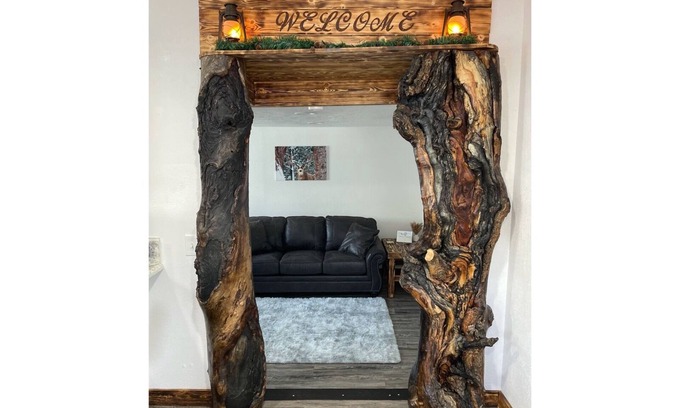 Welcome to Zion Redcliff's Lodging! Here you will find a unique home that has been fully remodeled. It is located between Zion National Park and Bryce Canyon with a private back yard that provides a view of the beautiful mountains. This rustic but modern home is one of a kind with all the beautiful woodwork and log accents. Enjoy watching the sunset into nightfall with a glorious view of the stars from the patio.