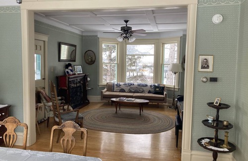 Historical Victorian home built in 1914, Doc's Harbor Inn is a beautiful old home that offers 140' of river front property. It features 4 private bedrooms and 2 full bathrooms, one is a state of the art with toilet, sink and beautiful shower...the other one is a toilet, sink, and the original claw tub. There is an elegant dining room and living room with a river view. Doc's has a full kitchen that includes a microwave and coffee machine. Doc's is a smoke free establishment. We do accept dogs
