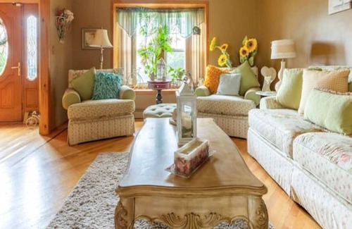 The house was lovingly built for families and groups to enjoy, decorated in a cottage style with antique details for a cozy and charming feel.