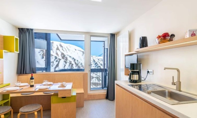 - Studio cabine cosy à Tignes avec balcon, proche pistes et commerces. Wifi inclus. - FR-1-411-905
