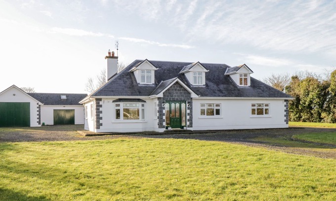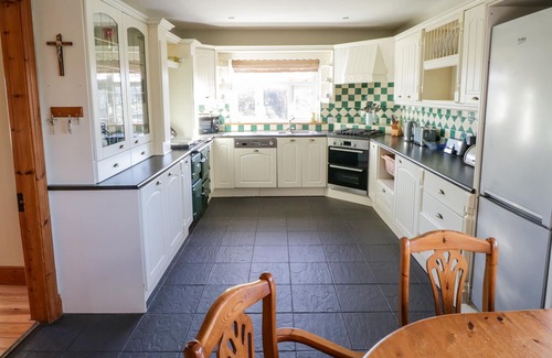 The living areas in this holiday home consist of a kitchen/diner with electric oven, gas hob, oil range cooker, fridge/freezer, dishwasher and dining seating, a utility with washing machine and tumble dryer, a sitting room with TV and woodburning stove and a sitting room with TV. The bedrooms consist of a double with en-suite shower room, a ground-floor double with en-suite shower room, a double and a family room with double and single serviced by a ground-floor bathroom and cloakroom. Outside there is ample off-road parking and large, wrap-around lawn. Within 3.1 miles there is a shop and pub. Travel cot, highchair and stairgate are available on request. Sorry, no pets and no smoking. WiFi, fuel, starter for woodburning stove, bed linen and towels are all included in the price. Explore the wonders of Ireland at Home Farm Retreat. Note: There are two steps up to the entrance, please take care.