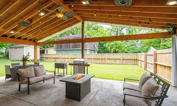 Home for 10 close to BNA & DOWNTOWN Nashville KING bed FENCED Patio BAR & Yard | House in Nashville