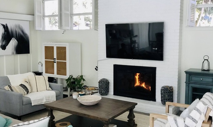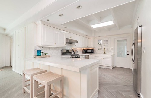 Tastefully renovated and fully furnished Mid Century Gem on Central Beach! 2/2 Old Florida charm pool home with great afternoon sun facing south. Heated Pool during winter season! Lush, tropical and private backyard all fenced in. Property sits on large 14,000 sft lot located a block away from the ocean, Costa del Este resort, the best local restaurants like The Tides, local shops, farmers market… Literally walking distance to everything! Spend time in this treasure coast small Florida town, a piece of paradise called Vero Beach. Home was all upgraded in 2022. King size bed in master bedroom, 2 full size beds in guest bedroom and an extra twin mattress available for extra guest. All linens, towels and kitchen utensils included - kitchen is FULLY equipped. Wine refrigerator and wine buffet credenza fully equipped with all kind of wine and cocktail glasses. Outdoor dining table and chairs with gas grill by pool area. Pool is heated during winter season when temperatures drop below 78 degrees, pool has a hot tub area (it's not a jacuzzi) but it gets pretty warm during winter when the heater is running, nice to enjoy at night with a glass of wine :). GREAT real fireplace with wood logs provided, Gas kitchen range. All all utilities included.