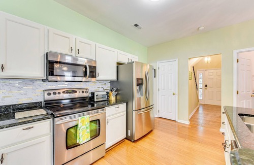 Savor suburban living and explore the Charlotte area with this Matthews vacation rental as your home base! With its large backyard and welcoming interior, this 4-bedroom, 2.5-bath home provides a haven where your crew can unwind after working or sightseeing. Looking to venture out? Hike and bike on nearby trails or visit Uptown museums. Afterward, relax and have dinner on the deck. A memorable extended stay awaits!