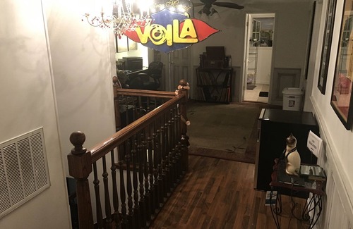 Entire top floor of 5600 sq ft home is rentable with 4 bedrooms, 2 baths, fridge, work space with wifi and printer. Pool also available to guests. Large bar/entertainment room may be available on request. Located in prestigious Ellendale Country Club.