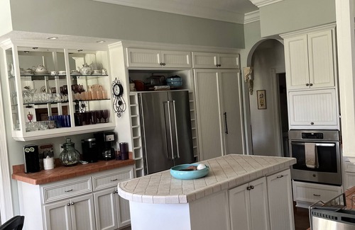 Beautifully decorated 3 bedroom 2 1/2 bath plenty of room to relax and enjoy the space without being under each other. The house sleeps up to 6 comfortably . All the rooms come with flat screens, Netflix, and wi-fi. The primary suite has wood floors, large 75" flat screen, and a king size spring free comfortable bed. The primary bath has double sinks, a 6' jaccuzi tub, a walk in shower. The second bedroom has wood floors, double closets, a queen size Tempur Pedic bed with large upholstered bed frame, and a flat screen tv. The 3rd bedroom has a twin beds with wood floors, flat screen, and a large walk in closet. The family room has a large 65” flat screen tv over a beautiful fireplace 3 sets of french doors leading out to the porch’s with beautiful gray linen drapes for privacy. Very comfortable furniture. The kitchen has a flush mount fridge. It has a nook in the bay window over looking the property. You will love cooking in this kitchen. I love this house. Come see for yourself. Enjoy!
