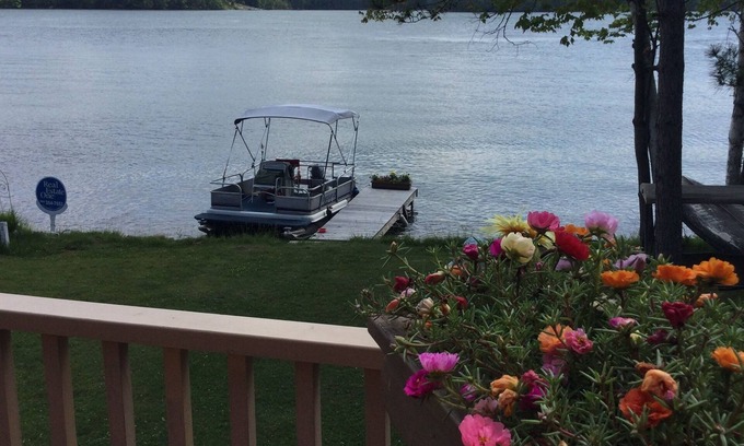 Quiet affordable place to relax. “ Perfect for couples” This 120 acre all sports lake is clean and deep, sand bottom great swimming, includes the use of a Pontoon Boat, Canoe, And a Paddle Boat, floaties, and lawn chairs.