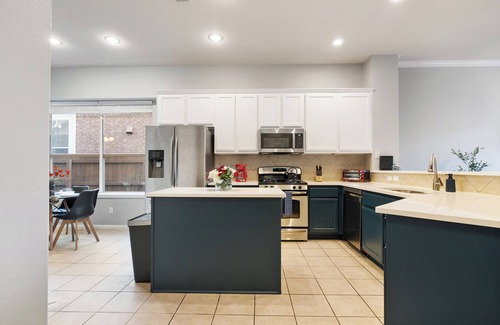 A fully equipped kitchen for your culinary needs and a large dining area perfect for sharing meals with loved ones.