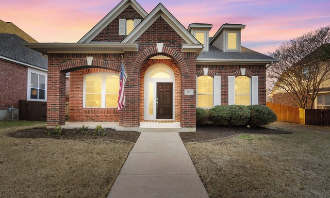 Welcome to the Home of the Brave. Two generations of veterans inspired this design with heartfelt tributes to American history and military service. Our home combines mid-century design with modern comfort and is centrally located between Historic Georgetown and Lake Georgetown. Cozy up to the outdoor firepit under a Texas sunset, play a relaxing game of cornhole or enjoy a ping pong tournament in the garage! Home faces Village Park with large playground. Quick access to many golf courses and the Wolf Ranch Shopping Center. We designed this home to pay tribute to our amazing soldiers, sailors, airmen and marines and inspire patriotism for the land of the free, and the home of the brave.