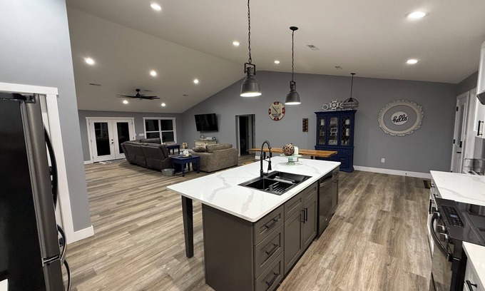 Your Cadiz adventures will begin with this 3 King size bed bedroom and 4 twins bunk room house. Nestled in a quaint neighborhood. This beautiful property offers a brilliant retreat for guest!! it provides ample space for relaxation and comfort. The house is thoughtfully designed to make you feel at home while you're traveling in Cadiz. Whether you're exploring the local attractions or simply unwinding in the serene ambiance, this place will be the perfect choice for your vacation. Come and experience the charm of this delightful retreat. Located on the main channel of Lake Barkley!!
