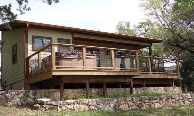 Centrally located on 3 wooded acres deep in the heart of Texas, Home on the Range is a sweet & simple Southern themed cottage with so much to offer. A true Hill Country retreat at an unbeatable value. Feel at peace with surrounding views of nature and a very well maintained, secluded space with an abundance of amenities. This space is a relaxing oasis to get away from it all.