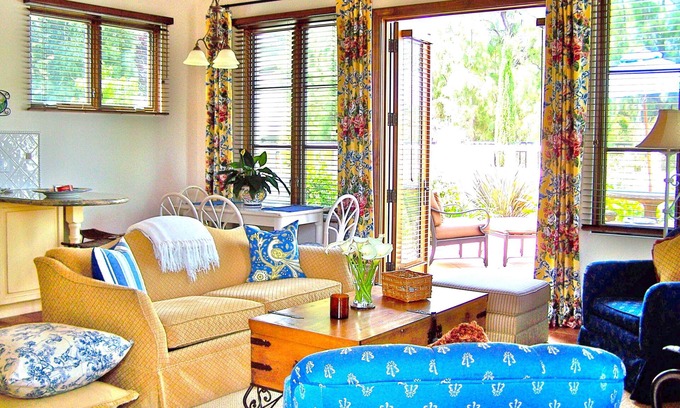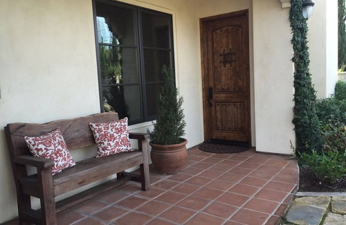 This charming casita is a detached one-bedroom house located on our one-acre gated property in south Solana Beach (west of 5 freeway) in a beautiful neighborhood that has a country feel. It is truly country meets the ocean! Some of the amenities include your own private courtyard and loggia for relaxing, beautiful landscape, and an amazing and walkable location near Beach, Del Mar Racetrack, Cedros Shopping/Design District, San Elijo Lagoon Reserve, and magnificent restaurants. Walk to Sunday Farmer's Market, wine tasting, brewing company, and quaint coffee shops. Listen to music at the famous Belly Up Tavern. Nearby is famous Torrey Pines Golf Course. House has a queen-sized bed, equipped kitchenette, and washer/dryer. Linens provided. No smoking.