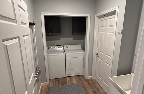 This Vrbo is perfect for those looking for a peaceful, centrally located getaway. With a fully equipped kitchen, laundry facilities, king size bed in the bedroom and a queen sleeper couch in the living room, you'll feel right at home. Plus, the big TVs will make it feel like a luxurious escape.