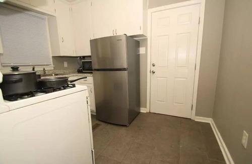 Cozy and spacious renovated home in family-friendly neighborhood. 3 Bedrooms, 1 Bath with Double-Vanity & New Tub/Shower. Amenities include WiFi, 2 Roku TVs, 1 Google Nest speakers, Coffee Maker, Blender, Microwave, Refrigerator, Complimentary Wine and a Laundry Room.