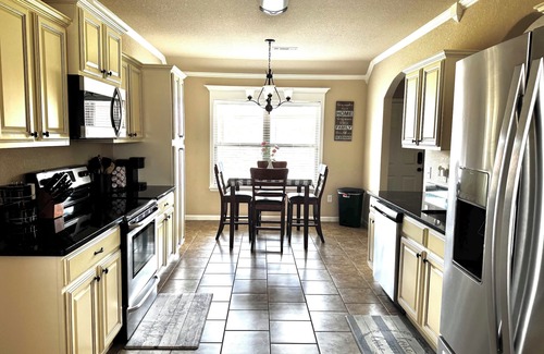 Bring the whole family to our cozy home, with lots of room and comfort. Kick back and relax in a newer safe and quiet subdivision, conveniently located within minutes from everything, Conway Towne Center, Hendrix College, Don Owens Sport Center, CineMark movie theater, Urban Air, Soccer Field, Conway Commons and Lewis Crossings Shopping Center, Beaver Fork Lake, Bowling Alley, Restaurants and so much more family activities. This 4BR and 2 baths home has open floor plan with a fully equipped kitchen, living room and separate dining room that's very spacious for everyone. All 3 collages are very close by and Legacy Acres wedding venue is 4 miles away. Book now and enjoy everything this house has to offer. Self Check-In!
