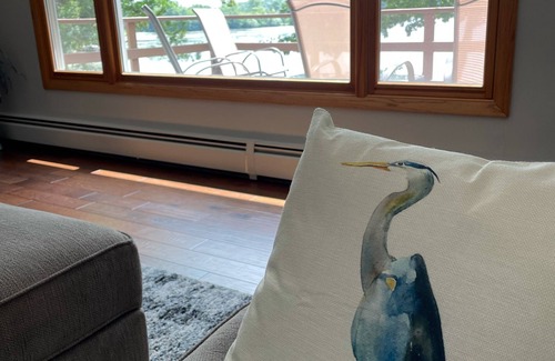 Heading outside, there is a large deck off the main level overlooking the lake - perfect for sipping coffee in the mornings. The large lower level patio has a table and chairs and a gas grill for outdoor dining. Go down a few stairs and you'll find a large brick patio and fireplace just feet from the lakeshore! Have a boat? No worries, tie up to one of two private docks! Great for fishing too! Included with rental is use of two kayaks and two canoes to go explore the lake. (Please note: Due to low water flow in the area, swimming is not advisable due to weeds, but there is a perfect swimming beach at the park one block away)