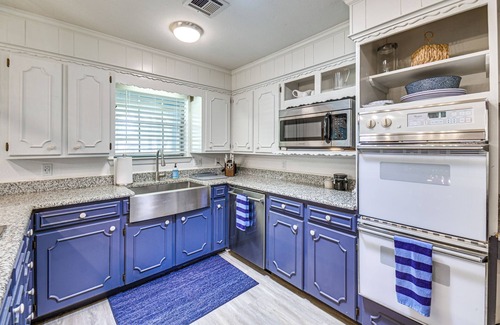 Seeking a Lake Texoma retreat for the entire family? Look no further than this vacation rental in Mead, Oklahoma. With a prime setting just a short walk from the shore, this spacious 4-bedroom, 3-bath house is perfect for a memorable lakeside stay. Cruise in the provided kayaks, check out nearby boat rentals, or try your luck at Choctaw Casino! Then, head home to enjoy a scenic sunset or end the night with a game of billiards.