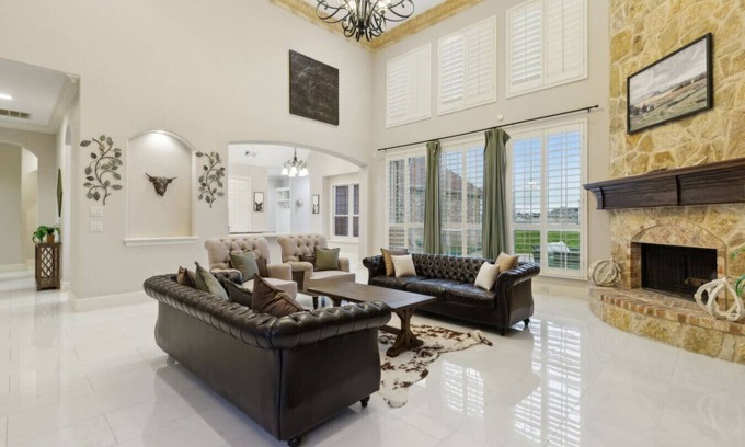 Welcome to our Texas retreat! Our 5-bedroom, 4.5-bathroom paradise features an inviting poker room, a relaxing hot tub, a charming patio, a spacious master bedroom, and a cozy theater room. Just a stone's throw away from fantastic activities and attractions, it's the perfect launchpad for your family's fun-filled adventures. Pack your bags and let the good times roll