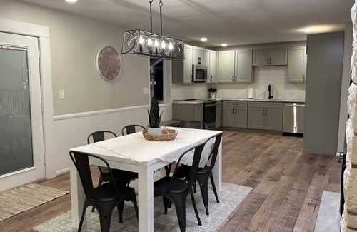 Located just off I44 and Historic Route 66 this country style home sits on a little over an acre lot right in town. This house is laid out perfect for multiple guest. This house sleeps 9 comfortably, but can sleep 2 more via queen air mattress .2 twin air matresses