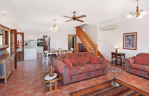 This home is situated on top of the hills in the Upper Hunter region, taking in the picturesque rolling countryside, with views towards Barrington Tops National Park, located next to Lostock Dam.