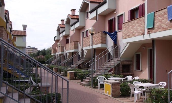 Cozy flat with a shared pool, 600mt from the beach and 200mt from the city center. It may be on the ground floor with garden (outdoor furniture) or on the upper floors with a balcony (outdoor furniture). The flat includes two bedrooms (one double, one with two singles or a bunk bed), a living room, a kitchen, double sofa bed, TV (national channels) and a bathroom with shower. Amenities: 2-way A/C, 1 parking space, washing machine, small oven or microwave, floor cleaning equipment and tableware cleaning kit. Wi-Fi is available from 24/04 to 30/09. The first supply of bath towels is not included (check below).