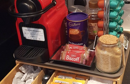 The kitchen is equipped with; oven, fridge/freezer, microwave, coffee machine, air fryer, blender, sandwich toaster and even a milk frother for those partial to a cappuccino! The tap water in Galway is safe to drink but tastes horrible, so we will provide you with triple osmosis filtered water to enjoy. It also makes tea and coffee taste way better!