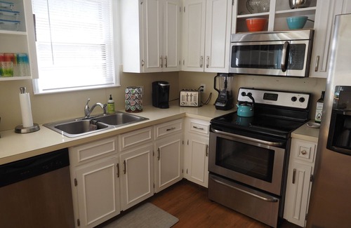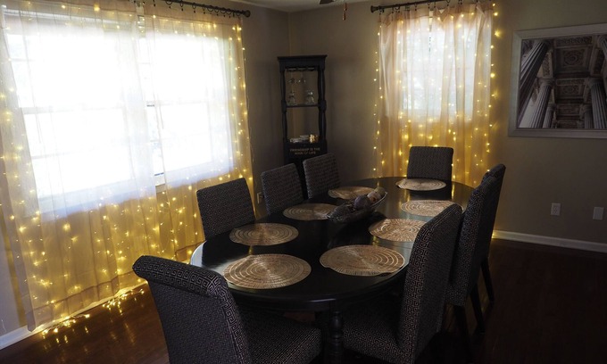 Fabulous 4 bedroom home with a huge inground pool! Formal dining room for entertaining, kitchen with all the accessories including instant pot, new comfortable beds with blackout curtains, large 75" TV with room for all to sit! Great yard in quiet neighborhood. Outdoor BBQ and Fire Pit. Enjoy the outdoors even if it's too cold to swim! Food delivery to the house, all major stores nearby. This is so much better than a hotel!