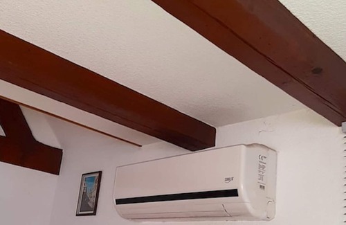The house features a dressing room, air conditionning, a vacuum cleaner, ironing equipment, a fan, a desk, a washing machine and cleaning products.