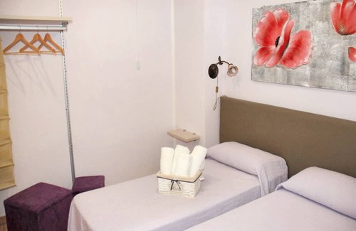 The apartment has 2 comfortable bedrooms, 1 including a single bed and a double bed and 1 including 2 single beds. The bathroom is fitted with a shower and a toilet.