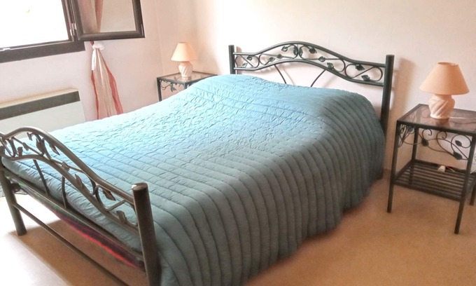 Inside, the apartment is designed for comfort and conviviality. The living area features a welcoming lounge with a comfortable sofa and a television. The fully equipped kitchen has all the utensils needed to prepare delicious meals with family or friends. A dining area with a generous table invites you to share memorable moments around homemade dishes.