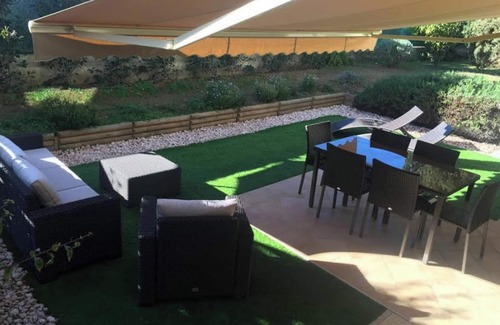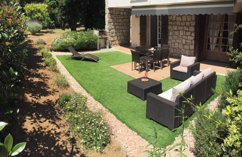 The apartment boasts a lovely private terrace where guests can enjoy outdoor meals or simply relax under the warm sun. The enclosed garden is the perfect spot for children to play. Also available are outdoor furniture and a barbecue, ideal for a cozy evening with family and friends.