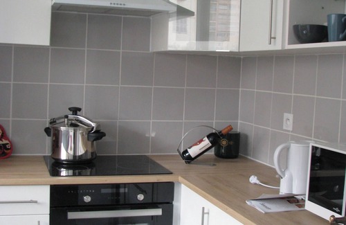 The apartment's interior is bright and inviting, featuring a cozy living room equipped with modern entertainment options like a flat-screen TV and CD player. The well-equipped kitchen has everything you need to prepare delicious meals, and the open layout ensures a pleasant atmosphere for relaxation and socializing.