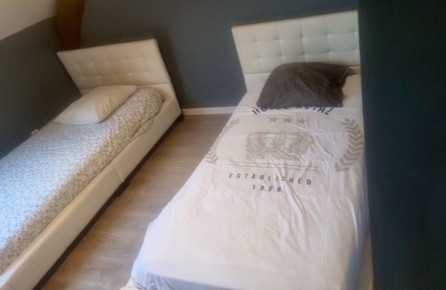 The apartment has a comfortable bedroom with 2 single beds. The bathroom is fitted with a shower and a toilet.