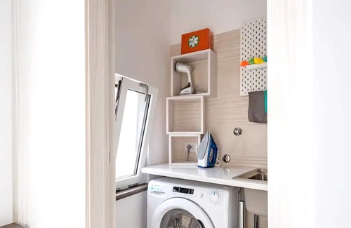 The apartment features air conditionning, a washing machine, a dryer, a dressing room, a fan, ironing equipment, a desk, cleaning products and a vacuum cleaner.