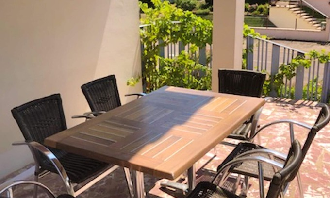 The kitchen is well-equipped for cooking up your favorite meals. Enjoy your feast around the dining table which seats 6 or outside, in the garden or on the terrace.