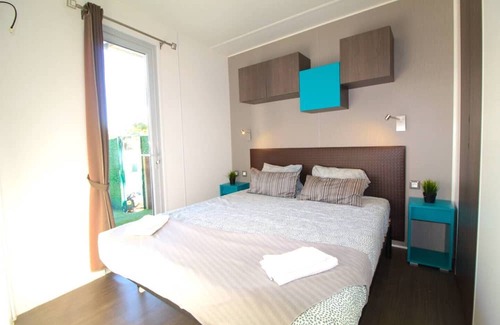 The bungalow features air conditionning, a dressing room, cleaning products and central heating.