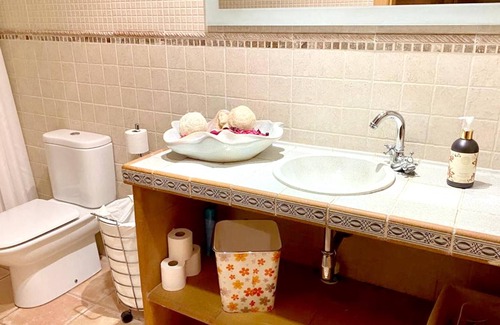 The house features air conditionning, central heating, ironing equipment, cleaning products and a washing machine.