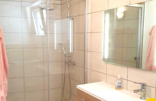 The house has 3 comfortable bedrooms, 1 including 2 single beds and a sofa bed, 1 including a double bed and 1 including 4 bunk beds. Several bathrooms are available, one with a shower and one with a shower and a toilet. A separate toilet is available