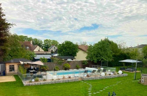 This villa, located in Saint-Brice-sous-Forêt, is ideal for 12 vacationers. It offers 6 bedrooms, a private pool open all year, an enclosed garden and WiFi.