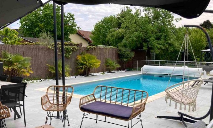 Terrain multisport (foot, tennis, basketball, volley). 1 trampoline. Playground for children. The master suite has a whirlpool bath.