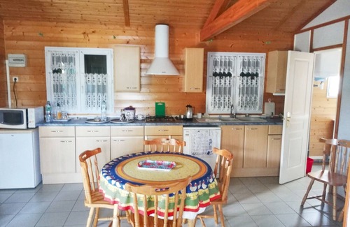 The chalet features an inviting living space with a comfortable sofa and a dining table for enjoying meals together. Equipped with all necessary amenities, it is designed to ensure a pleasant stay. You will have access to a kitchen ready for you to prepare your favorite dishes and savor convivial moments.