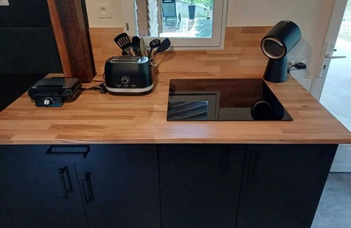 The chalet features a lovely un-fenced garden where you can soak up the sun on outdoor furniture and relax on a deck chair. The terrace is perfect for al fresco dining with views of the garden. It provides a peaceful oasis to fully enjoy nature. It’s the ideal setting for both romantic moments and relaxing days outdoors.